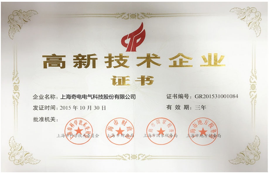 热烈庆祝上海通博TBET电气科技股份有限公司荣获由上海市科技部、上海市财政部、上海市国家税务总局和上海市地方税务局联合颁发的高新技术企业证书。
